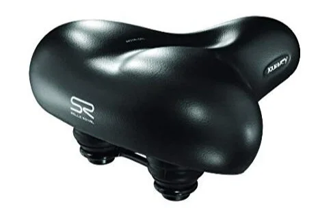 Spring or elastomer saddles have built-in suspension along the back to minimize road shock