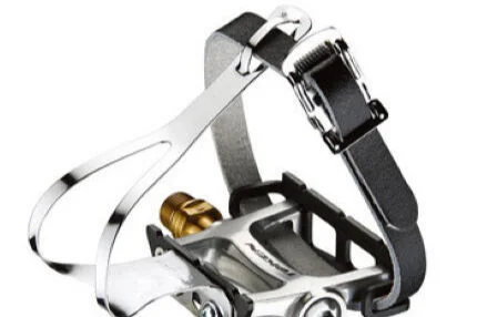 If you’re not quite ready for clipless, for riding in traffic, toe clips or half-clips are a good way to help ensure your feet won’t accidentally slide off the pedals when you accelerate.